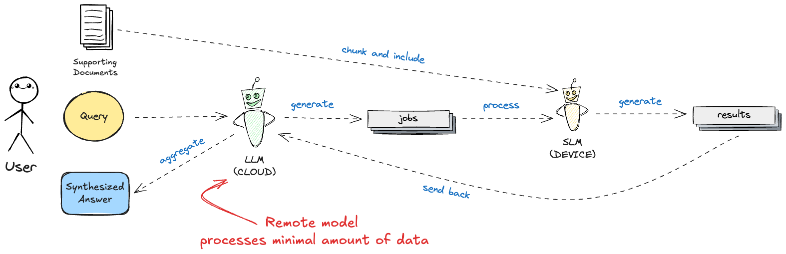 This approach transforms the typical “send everything to the expensive model” workflow into a collaborative process where the expensive model only handles the tasks that truly require its advanced capabilities. It also “offloads” the cost of processing from the cloud to the local device, where computation could be viewed as being effectively free (from the system standpoint).
